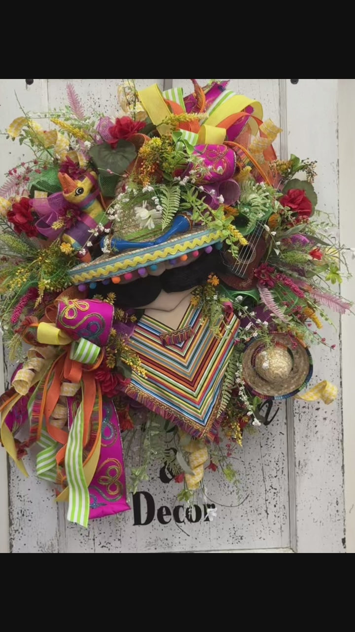 Festa. Hand made wreath attachment full of birght colors to carry you through the whole summer. Perfect for a front porch back porch or to hang in you house to brighten up a spot